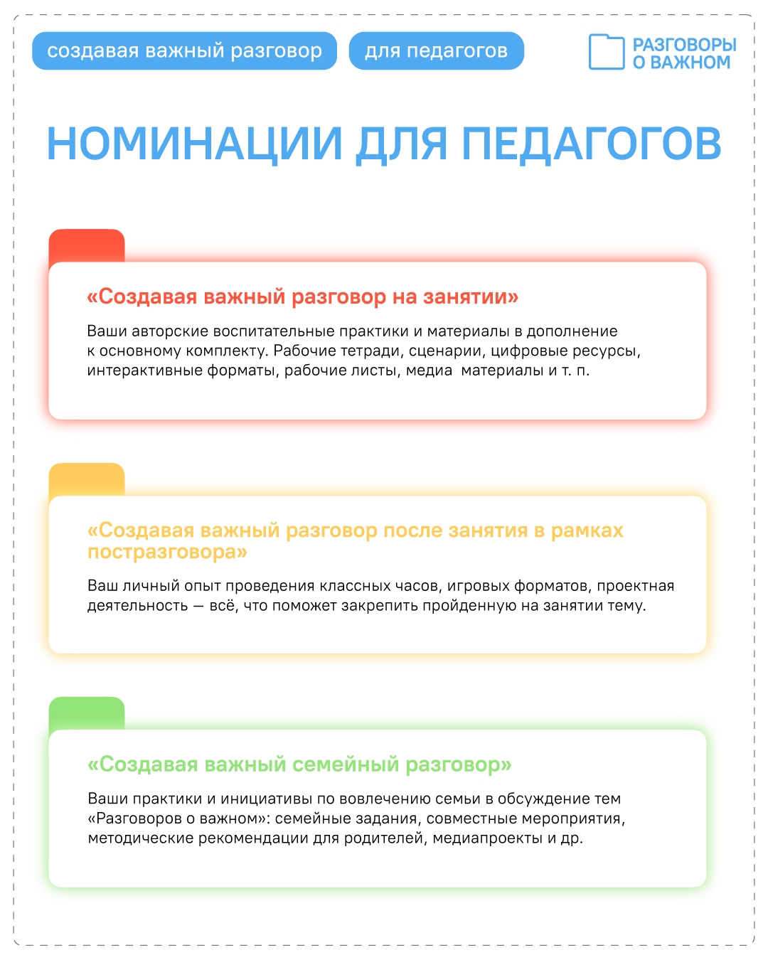 Тогда Вам – на премию «Разговоры о важном»! Номинация «Создавая важный разговор» - специально для вас!