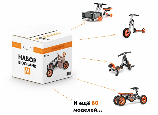 Конструкторы «Биго» позволяют детям самостоятельно собирать более 100 видов действующих транспортных средств (электромобили, веломобили, квадроциклы, снегокаты и др.). Также компания предлагает робототехнический набор, способствующий изучению программирования и робототехники в школах. Набор дополнен комплектом методических материалов и поурочными планами для 5-9 классов.