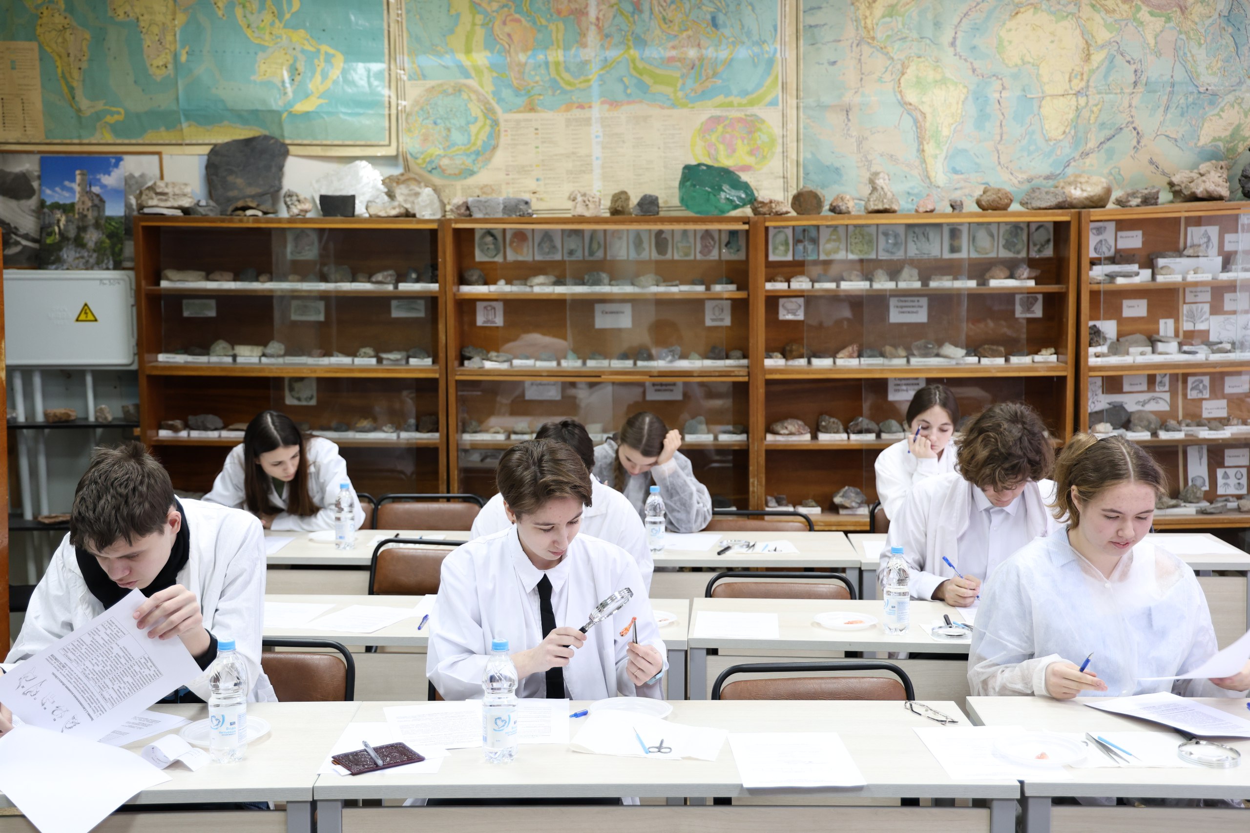«Ребятам было предложено пройти ряд практических заданий, в ходе которых они продемонстрировали свои способности по приготовлению микроскопических препаратов, работе с лабораторным оборудованием и наблюдениям за растениями и животными. Для каждого класса были предусмотрены специальные кабинеты, оснащённые необходимым оборудованием и образцами для изучения. Так, учащиеся девятых классов выполняли задания по морфологии и систематике растений, цитологии и гистологии, а также зоологии беспозвоночных. Ученикам десятого класса предстояло разобраться в анатомии растений, изучить основы зоологии позвоночных и познакомиться с основами человеческой анатомии и физиологии. Наконец, школьники одиннадцатого класса работали в кабинете физиологии растений и биохимии, занимались экологией и систематикой животных, а также исследовали вопросы генетики». Впечатляет! Настоящие ученые!