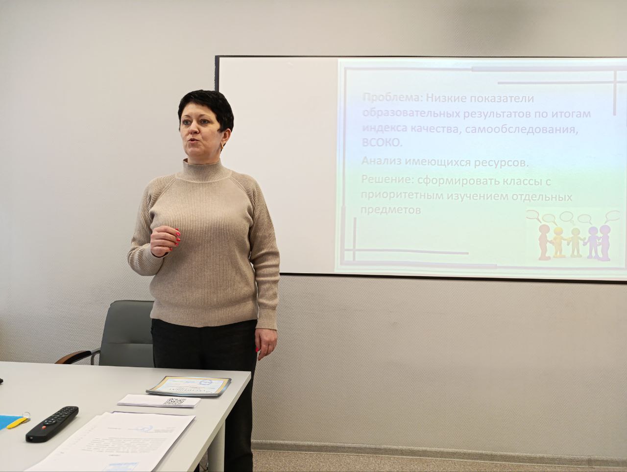 Андрианова Людмила Александровна, директор школы №3 Гороховецкого района, поделилась опытом работы по теме «Формирование классов с приоритетным изучением отдельных предметов на уровне основного общего образования как средство улучшения образовательных результатов».