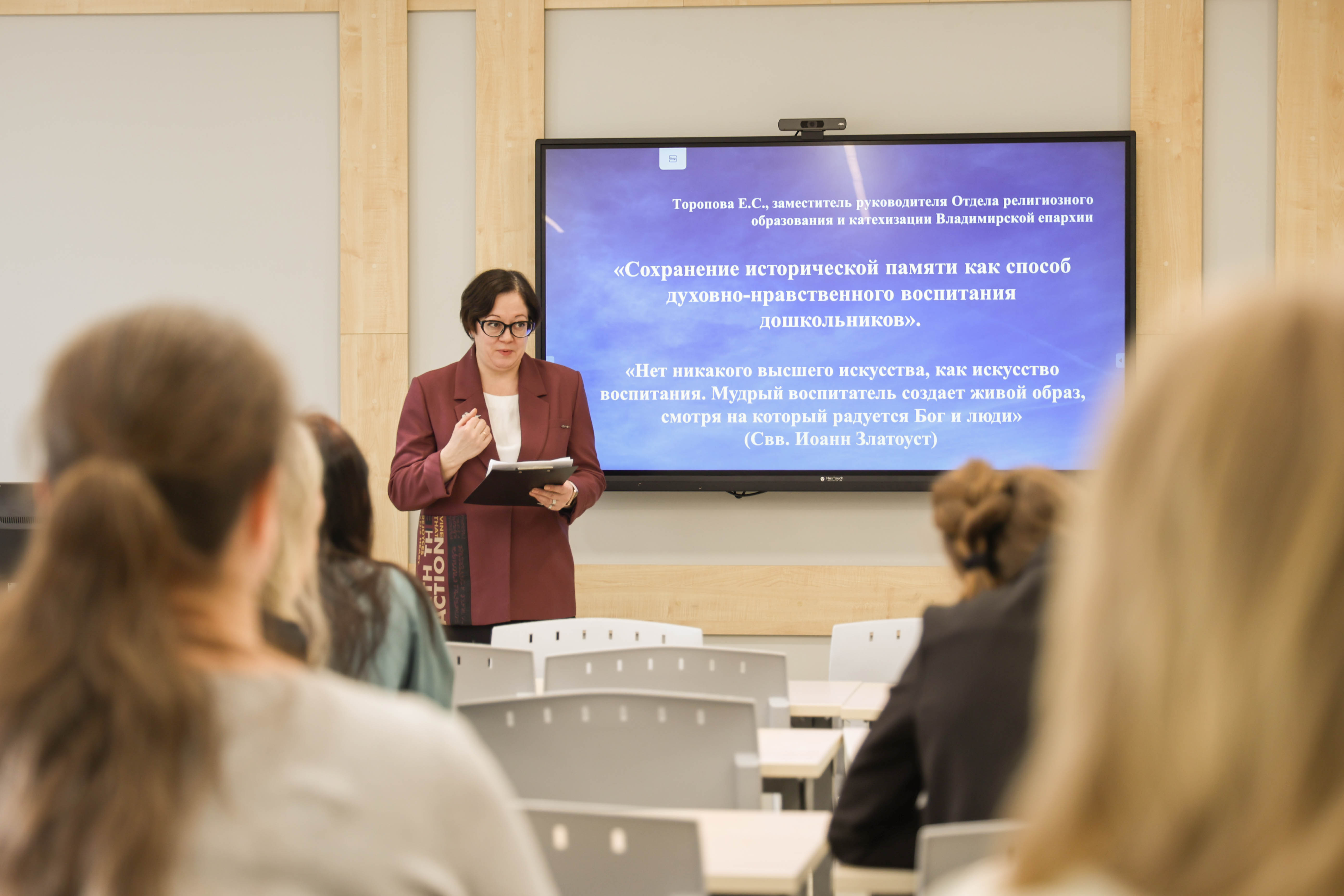 24 февраля 2026 года Министерством образования Владимирской области, Владимирским институтом развития образования (заведующая кафедрой ДиНО Толкова Н.М.) совместно с отделом религиозного образования и катехизации Владимирской епархии (заместитель руководителя отдела катехизации Владимирской епархии Торопова Е.С.) проведен семинар для педагогических работников дошкольных образовательных организаций по вопросу сохранения и укрепления традиционных российских духовно-нравственных ценностей.