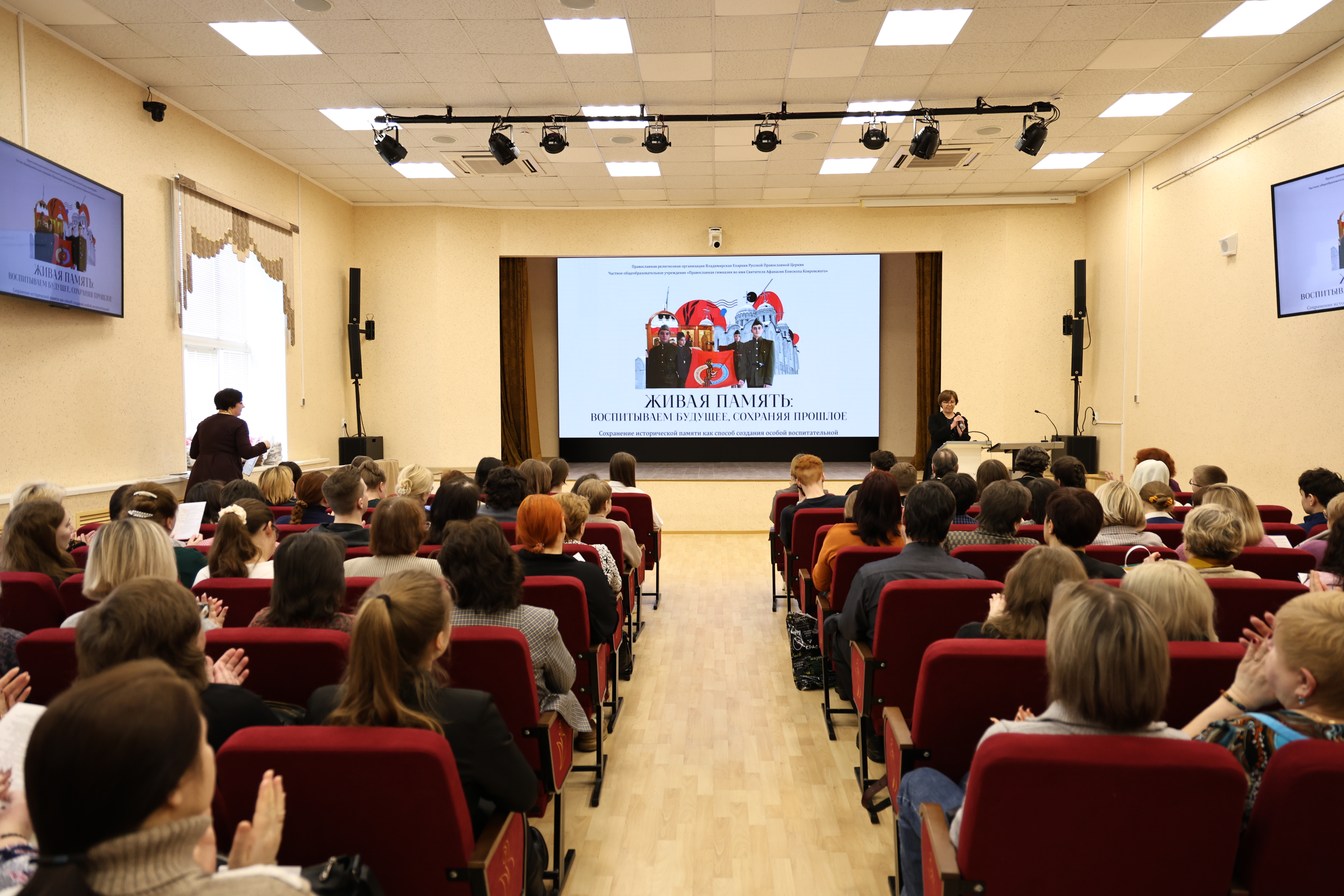 Торопова Е.С., директор Православной гимназии во имя Святителя Афанасия Епископа Ковровского, заместитель руководителя Отдела религиозного образования и катехизации Владимирской Епархии, рассказала о создании особой образовательной среды в учебном заведении, способствующей сохранению исторической памяти.
