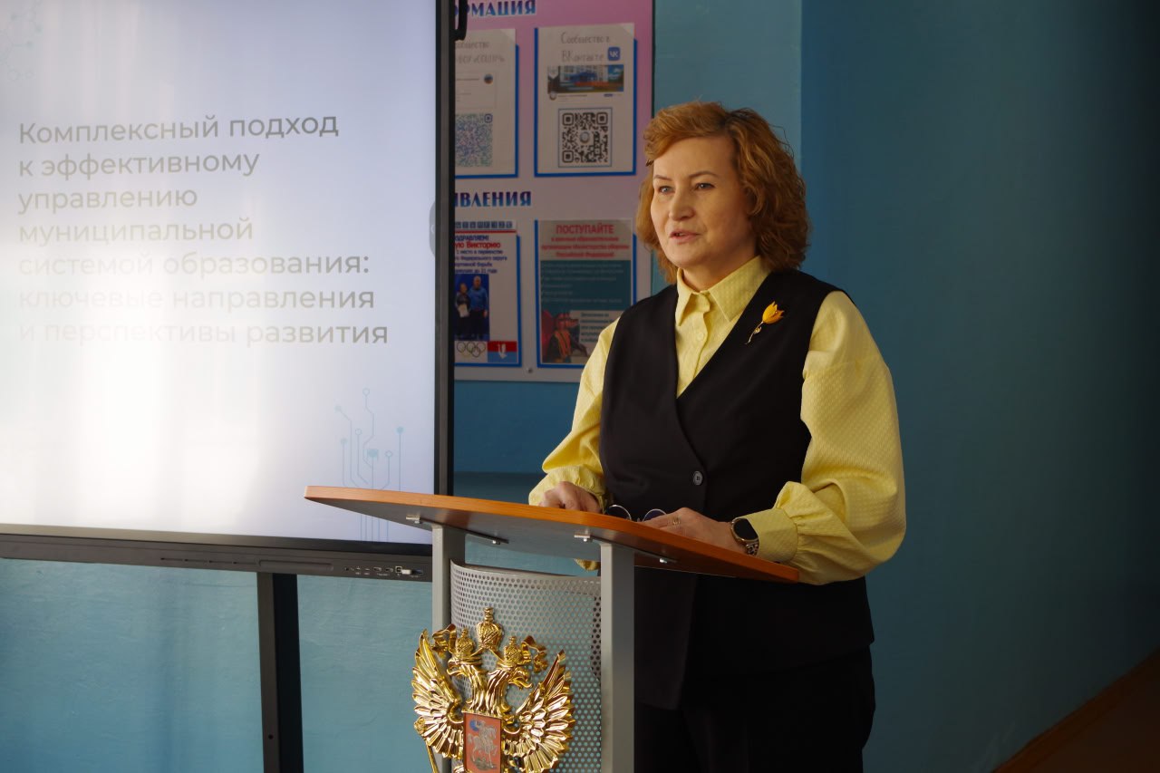 Причепа Т.В., начальник управления образования и молодёжной политики Гусь-Хрустального, представила управленческие механизмы, ориентированные на создание единого образовательного пространства, обеспечение доступности образования для всех жителей муниципалитета и повышение качества образовательных услуг.